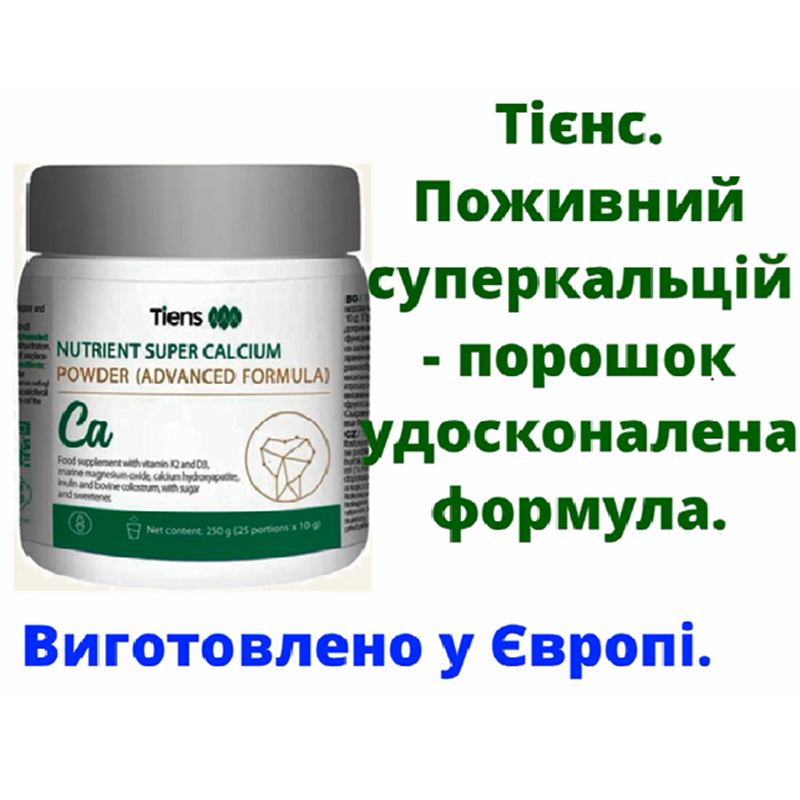 TIENS Порошок з високим вмістом кальцію. NUTRIENT SUPER CALCIUM POWDER IMPROVED FORMULA. TIENS. Поживний суперкальцій – порошок (удосконалена формула). НЕЙМОВІРНЕ ВІДКРИТТЯ У СВІТІ ДОБАВОК! Кальцій – це диригент організму! Він відповідає за роботу нервів, м’язів, серце! Але парадокс: понад 60% людей у світі страждають від його дефіциту, навіть не підозрюючи про це! І наслідки? Ламкі кістки, м’язова слабкість, аритмія, підвищена тривожність. КОМПЛЕКСНА ФОРМУЛА: КАЛЬЦІЙ + D3 + К2 + МАГНІЙ! Кальцій TIENS – це революція у світі добавок! Ціна 2611.00 грн.
